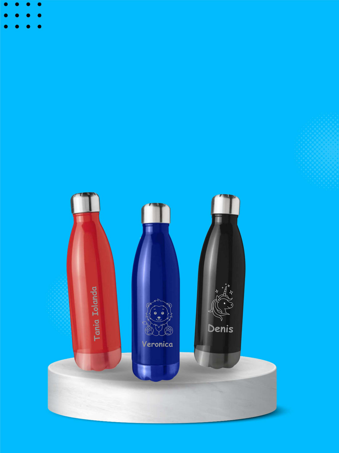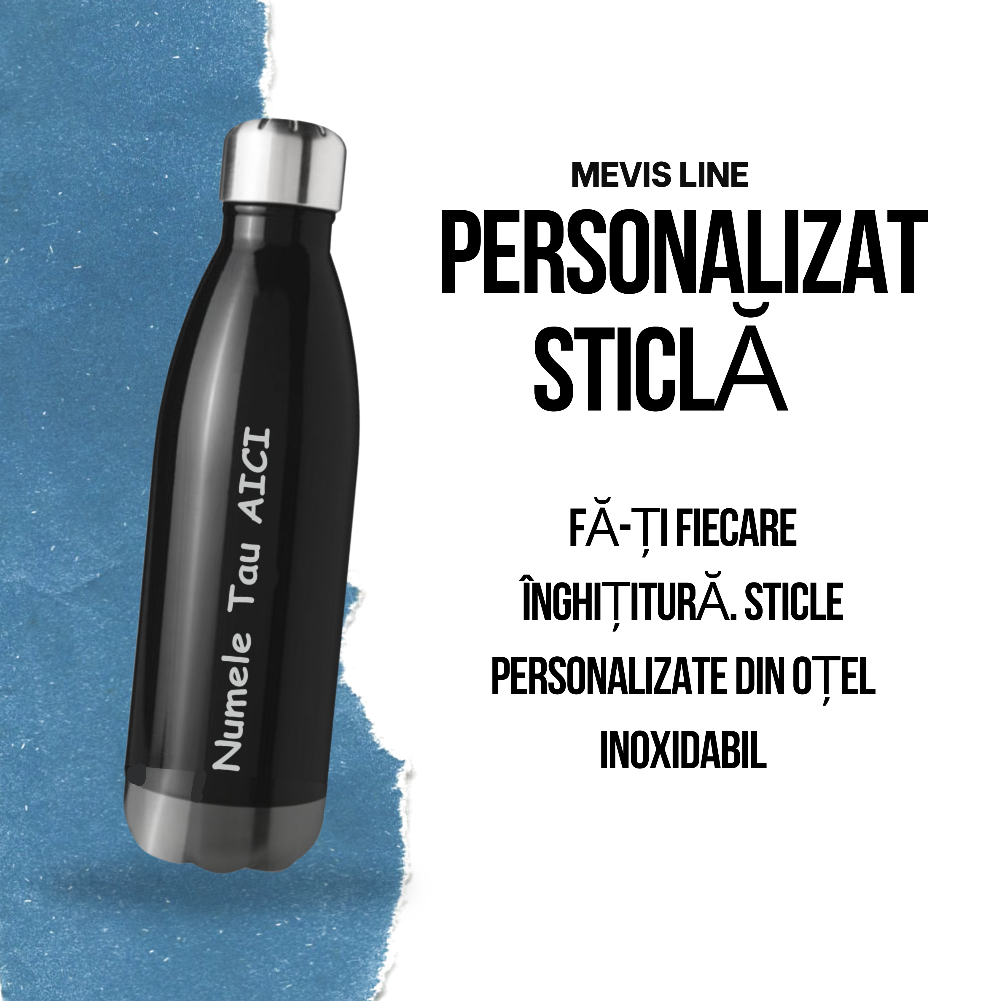Sticla Termos din Inox, Personalizata cu numele tau, Pereti Dubli, 0.5 L, Negru