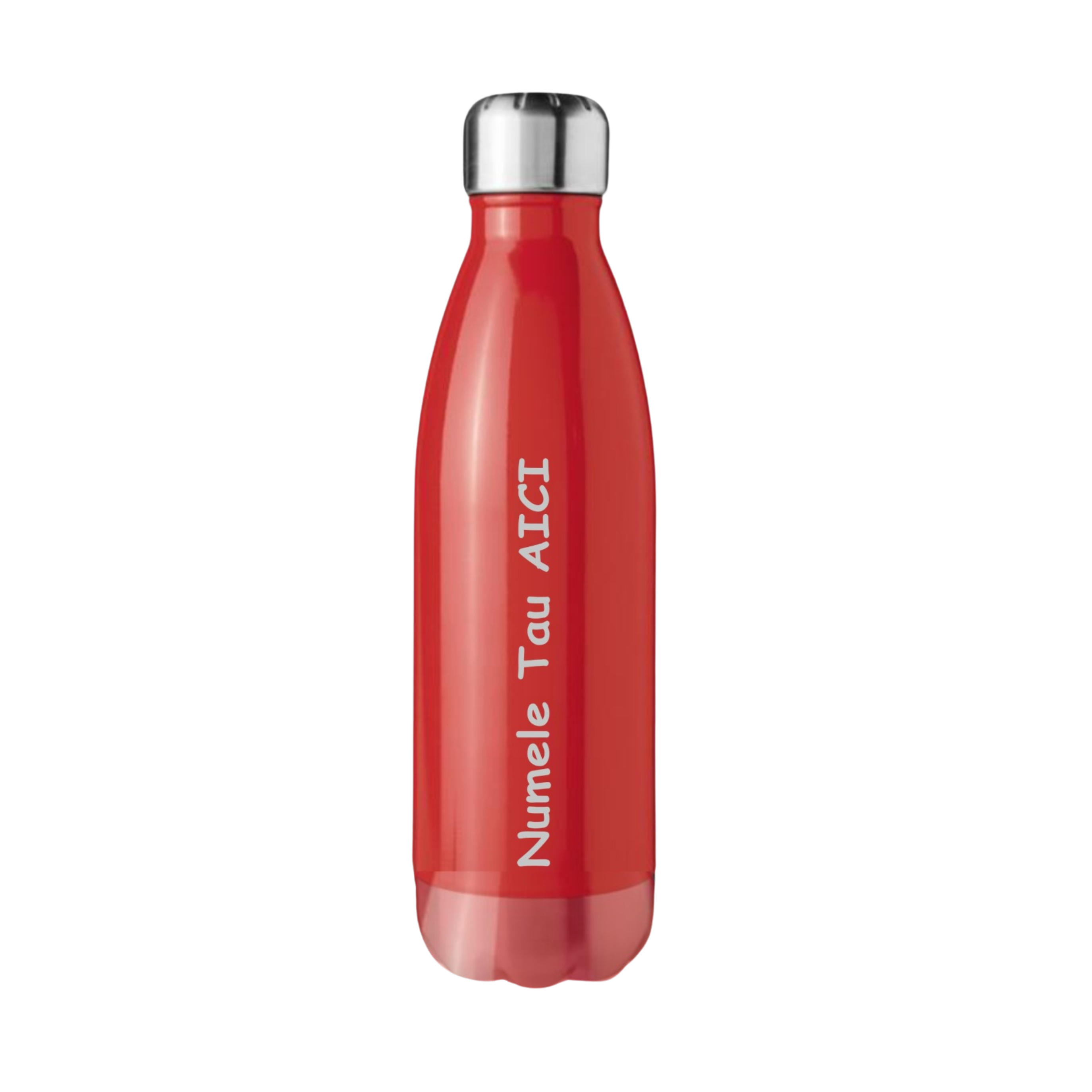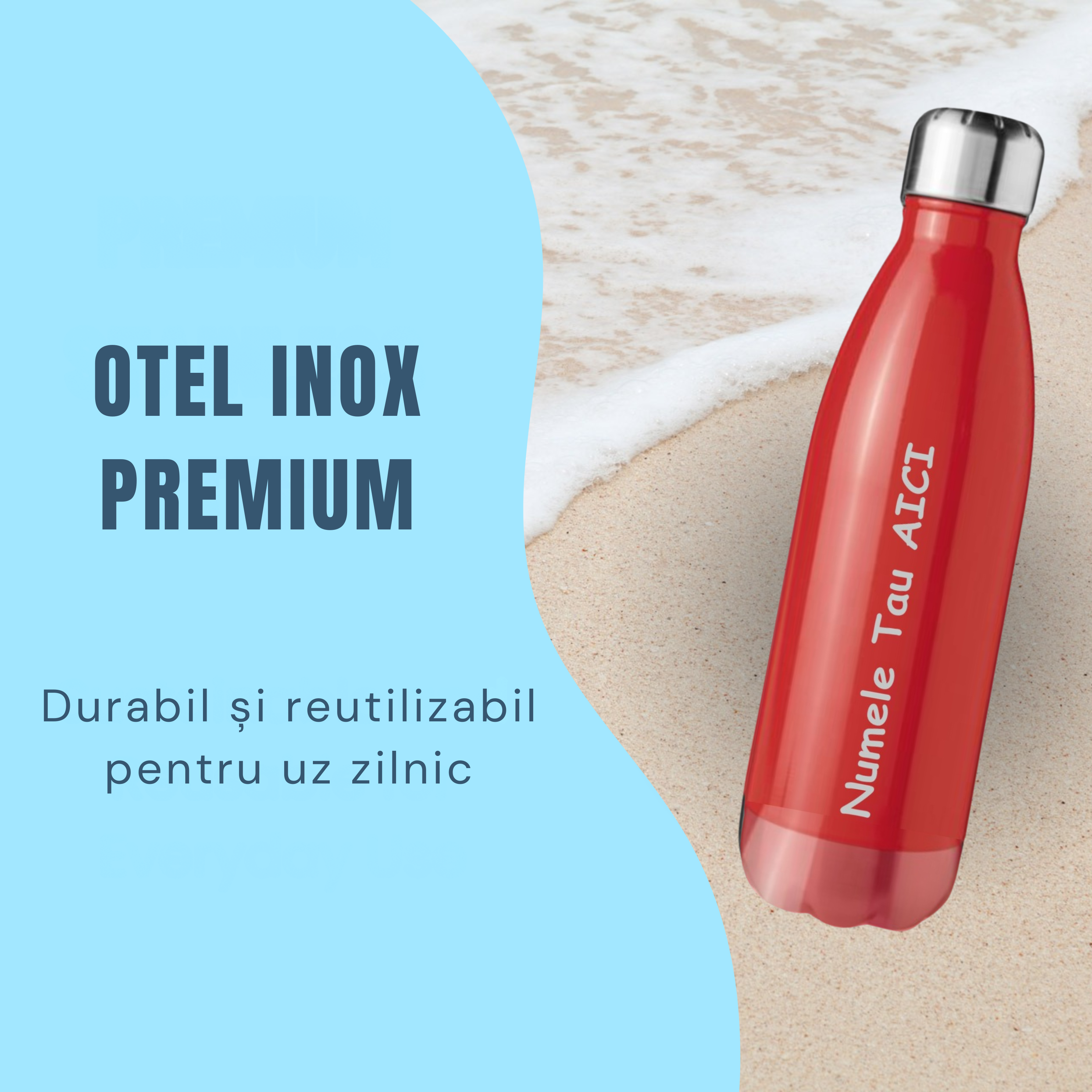 Sticla Termos din Inox, Personalizata cu numele tau, Pereti Dubli, 0.5 L, Rosu Lucios