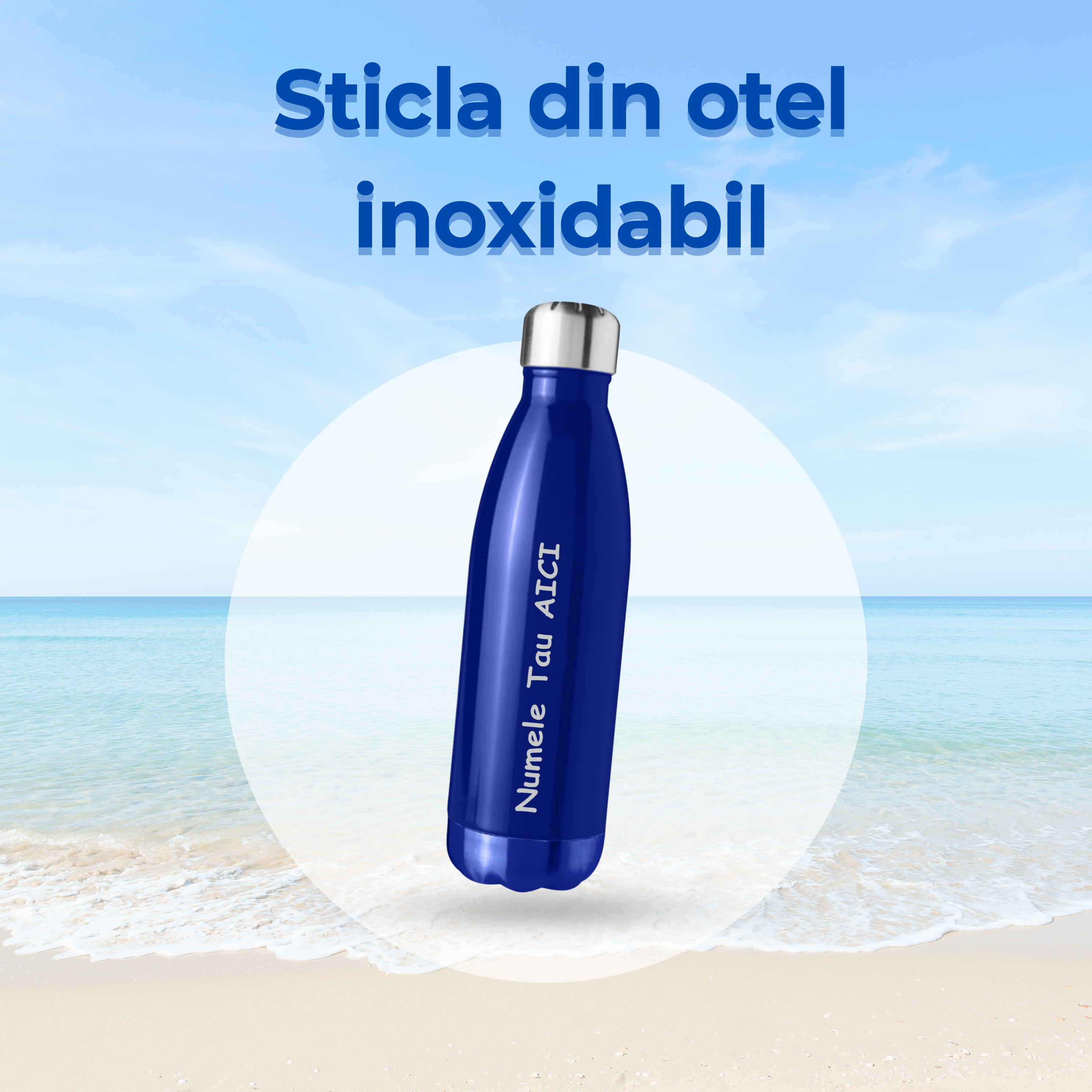 Sticla Termos din inox, personalizata in stilul tau, pereti dubli, Albastru