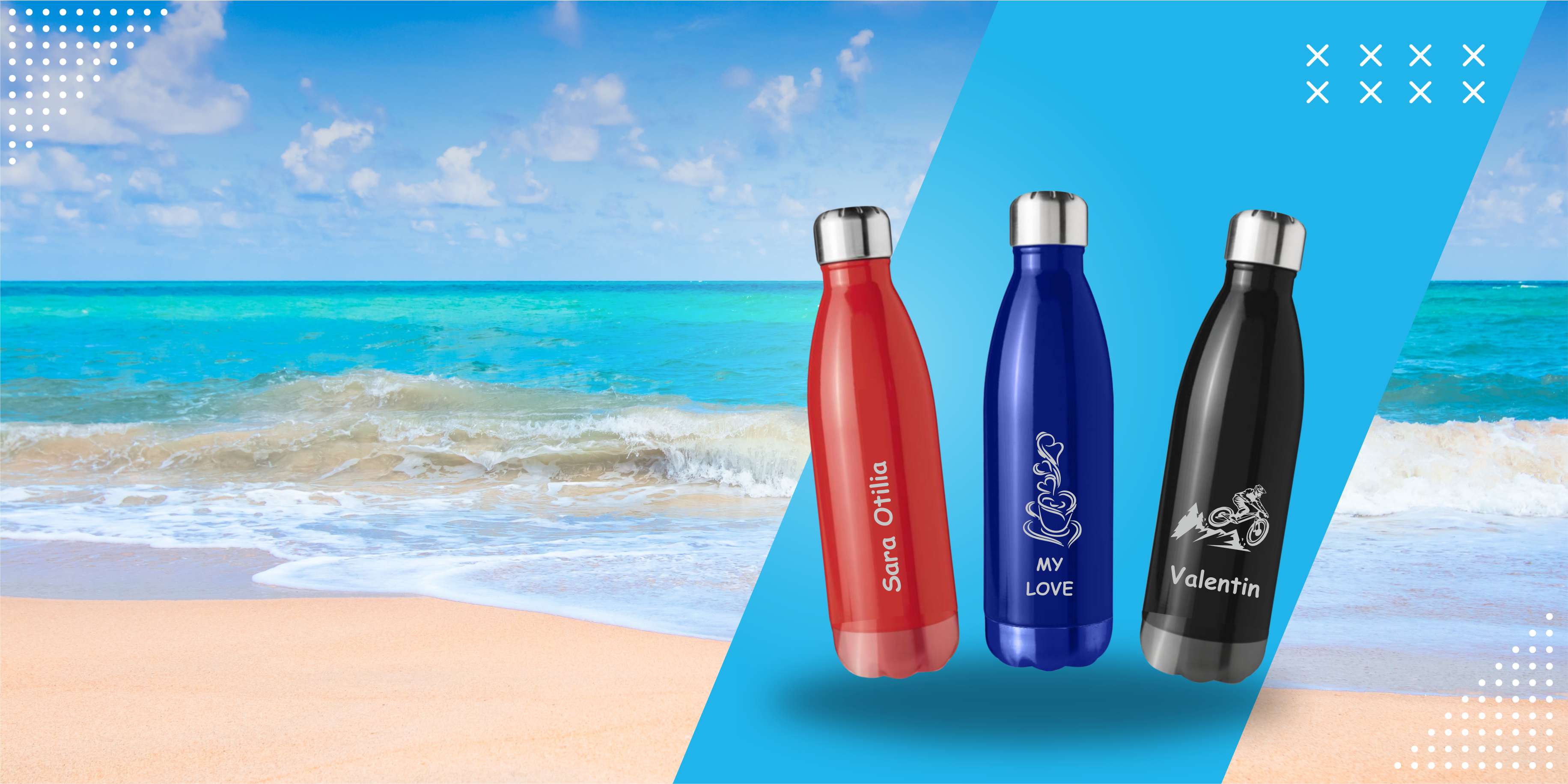 Sticla Termos din inox, personalizata in stilul tau, pereti dubli, Albastru